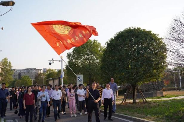 物理与电子公司部门工会积极响应校工会号召,开展以“庆祝二十大,永远跟党走”健步走主题活动。11月9日下午4时30分,公司全体教职工会员从新校区物理楼前坪出发,沿玉带河畔、看日斜西山,绕图书馆旁、闻书香气息,过教学楼下、听朗朗书声,英姿矫健五千步,交流学习二十大,谈笑风生,其乐融融。