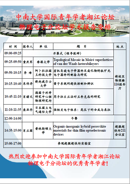 伟德国际1946官网国际青年学者湘江论坛 物理电子分论坛学术报告安排