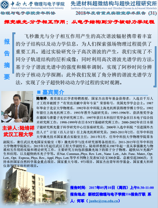 名师名家讲坛 探究激光-分子相互作用:从电子结构到分子核动力学过程