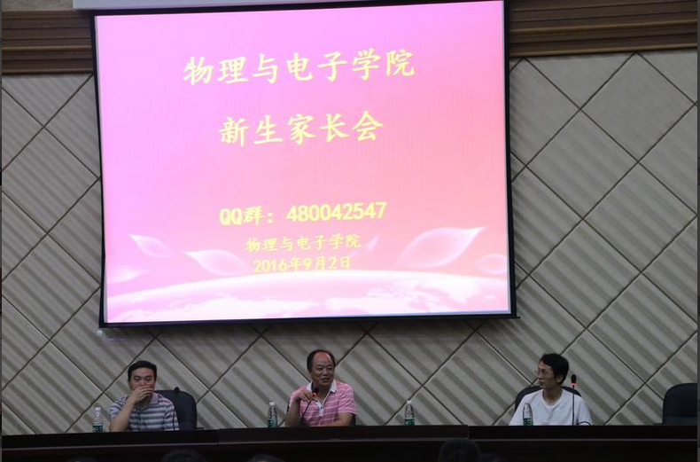 9月2日晚7:00,物理与电子公司2016级新生家长会于物理楼116报告厅顺利召开。公司党委书记许宏武,副经理孙克辉、徐富新,党委副书记谢群出席家长会, 200余名新生家长参加了此次会议。
