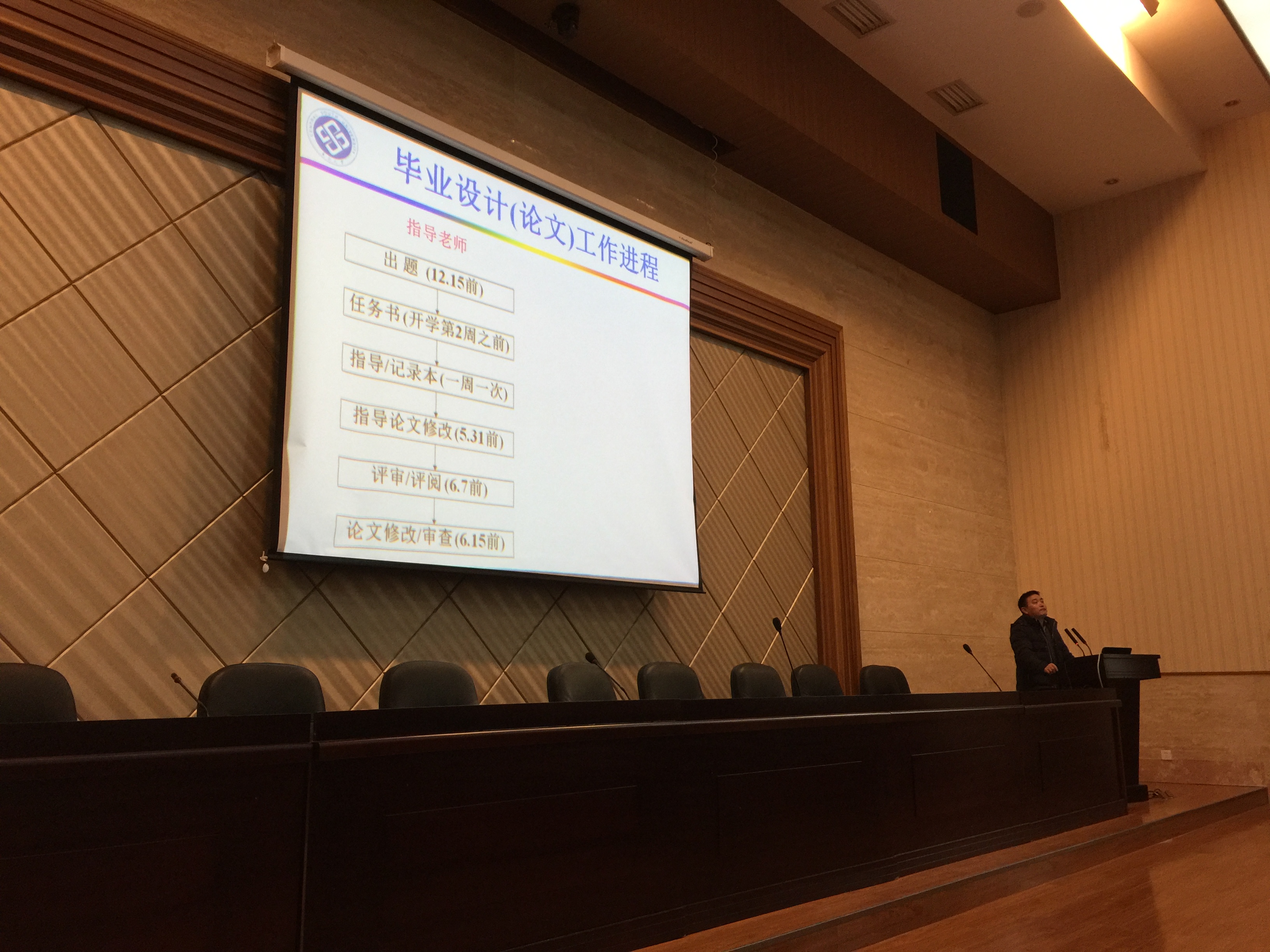 会上,孙克辉副经理分析总结了2016届毕业设计(论文)工作的情况,对今年的毕业设计(论文)工作作了具体安排,在任务时间段划分、相关文档、成绩评定等方面做了详细的说明。他强调,全体师生都要高度重视毕业设计(论文)工作,每位员工都要在相应的时间段完成既定的任务,以严谨认真的态度写好大学四年的最后一份答卷,每位指导老师都要认真负责,公平公正,对于赴外校做毕业设计的员工要严格管理、一视同仁。