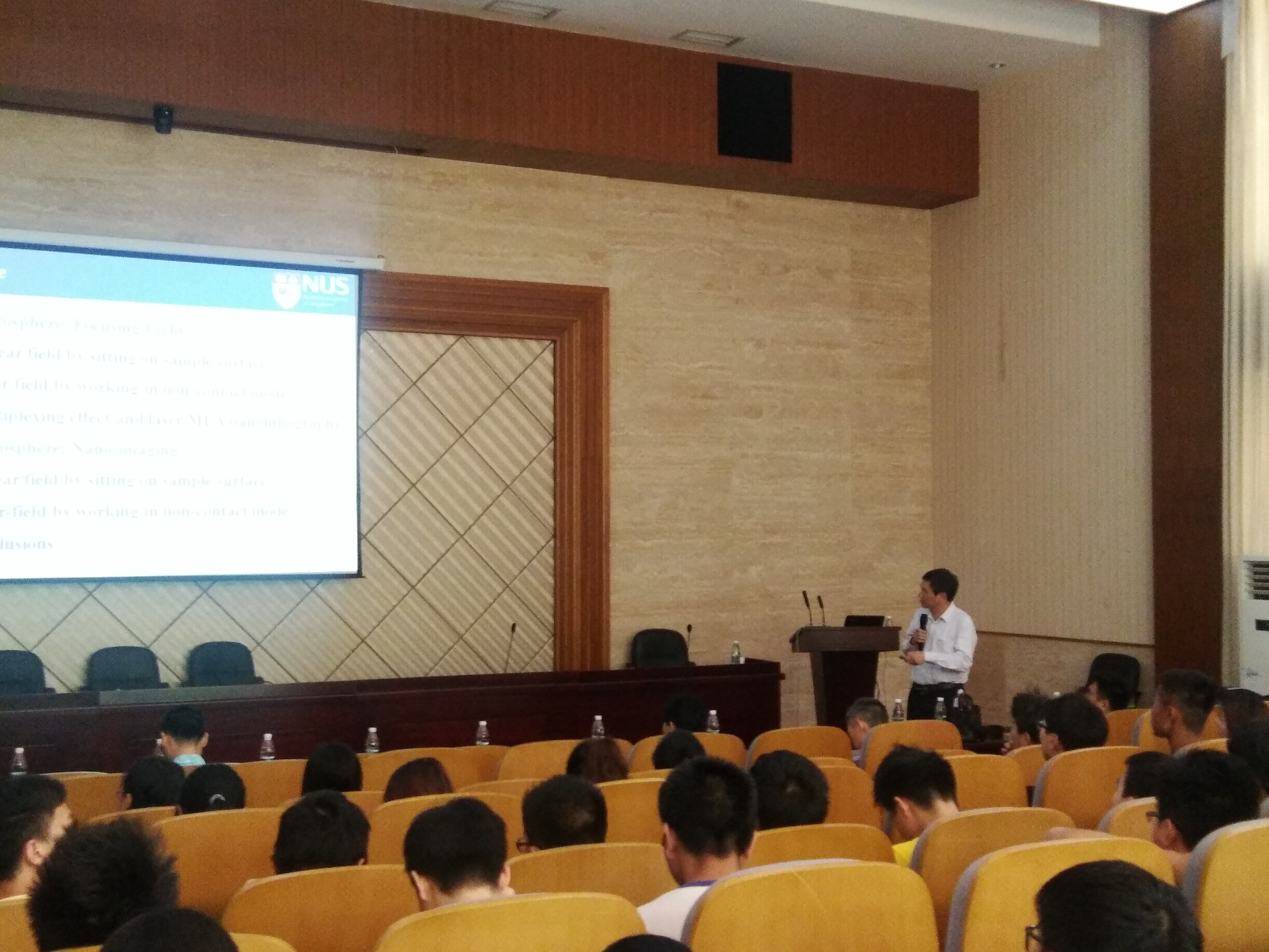 Nanoscope”为题,深入浅出地讲述了如何从看似简单的几微米大小介质微球着手,首次发现了微球的光学超分辨率聚焦现象,并利用微球和微球阵列用于微制作三维结构、快速产生阵列图案、光学超材料的构造等。与此同时洪教授还进一步阐述了如何利用微球实现光学超分辨成像的开创性研究工作,并以多个亲身事例告诉在场研究生们如何发现研究中的新现象,如何坚持做一个课题,如何培养研究习惯等。报告结束后,洪教授与在场师生进行了亲切的交流互动,并耐心地回答了大家提出的多个学术问题,现场气氛活跃,随后洪明辉教授参观了超微结构与超快过程湖南省重点实验室和高性能复杂制造国家重点室