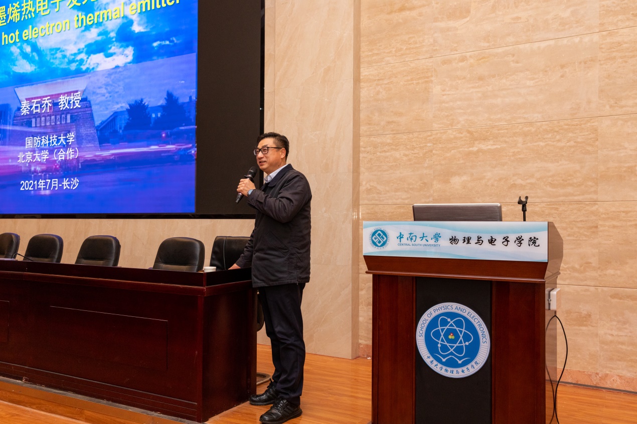 接下来,由秦石乔经理以“石墨烯热电子发光研究”为主题展开了专题前沿讲座:主要介绍了石墨烯热电子的研究意义与技术挑战,重点剖析了该领域的发展前景,引发了与会人员的热烈讨论;文双春经理以“从未来职业发展看今天如何读大学”为题,从人才培养层面提出了,未来职业发展需要怎样的品格和能力,从教师层面提出了,立德树人的成效就是影响和改变教育者,给研究生们上了一堂生动、感性的教育课。