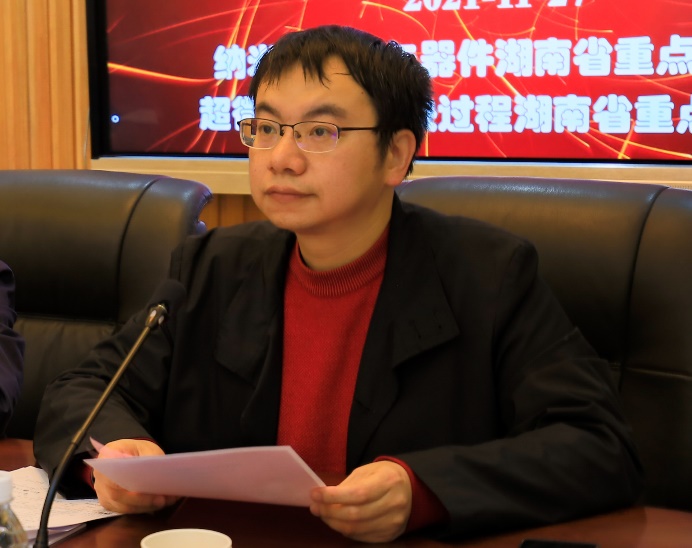袁永波教授、陶少华教授分别代表超微结构与超快过程湖南省重点实验室和纳米光子学与器件湖南省重点实验室从科研进展、平台建设与人才引进等方面做年度总结汇报。重点实验室骨干成员夏庆林副教授、肖思教授、王辉教授、蒋杰副教授依次做学术汇报,向各位专家详细介绍近期的研究成果。