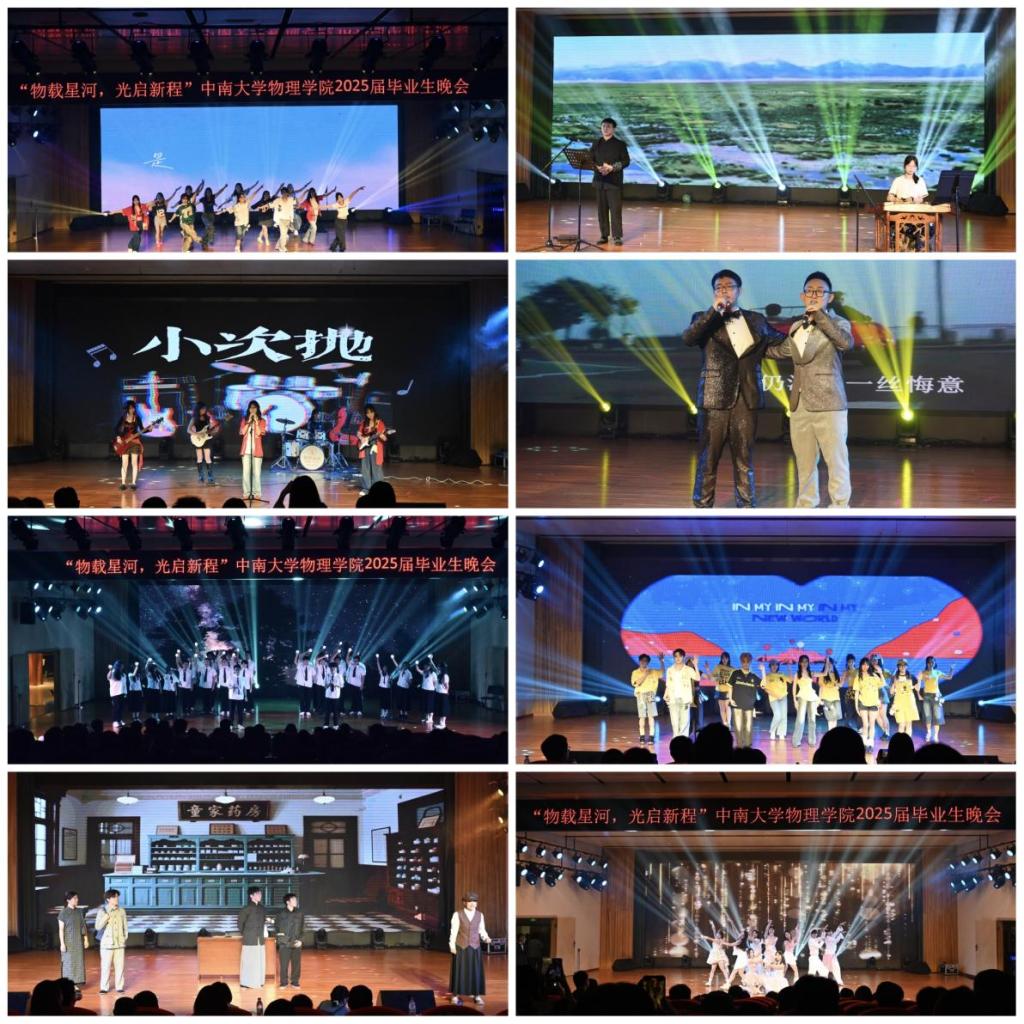 晚会节目情感真挚。开场舞《等你的回答》点燃现场热情后,小次抛乐队带来的摇滚乐曲震撼登场;光电2102班合唱《夜空中最亮的星》,以歌声传递同窗情谊;热血小品《童家一夜》再现历史岁月,引人深思;舞蹈《World》节奏轻快、风格独特,展现青春活力,引发观众共鸣;毕业班员工李青松和王锦尧合唱歌曲《风再起时》旋律动人,唤起校园回忆;光电2101班诗朗诵铿锵有力,诉说青春梦想;应物2101班合唱《后来》深情演绎未来憧憬;活力舞蹈《Strategy》将气氛推向高潮,现场沸腾。结束曲环节,应物T2101班师生温情互动,为晚会画上圆满句号。