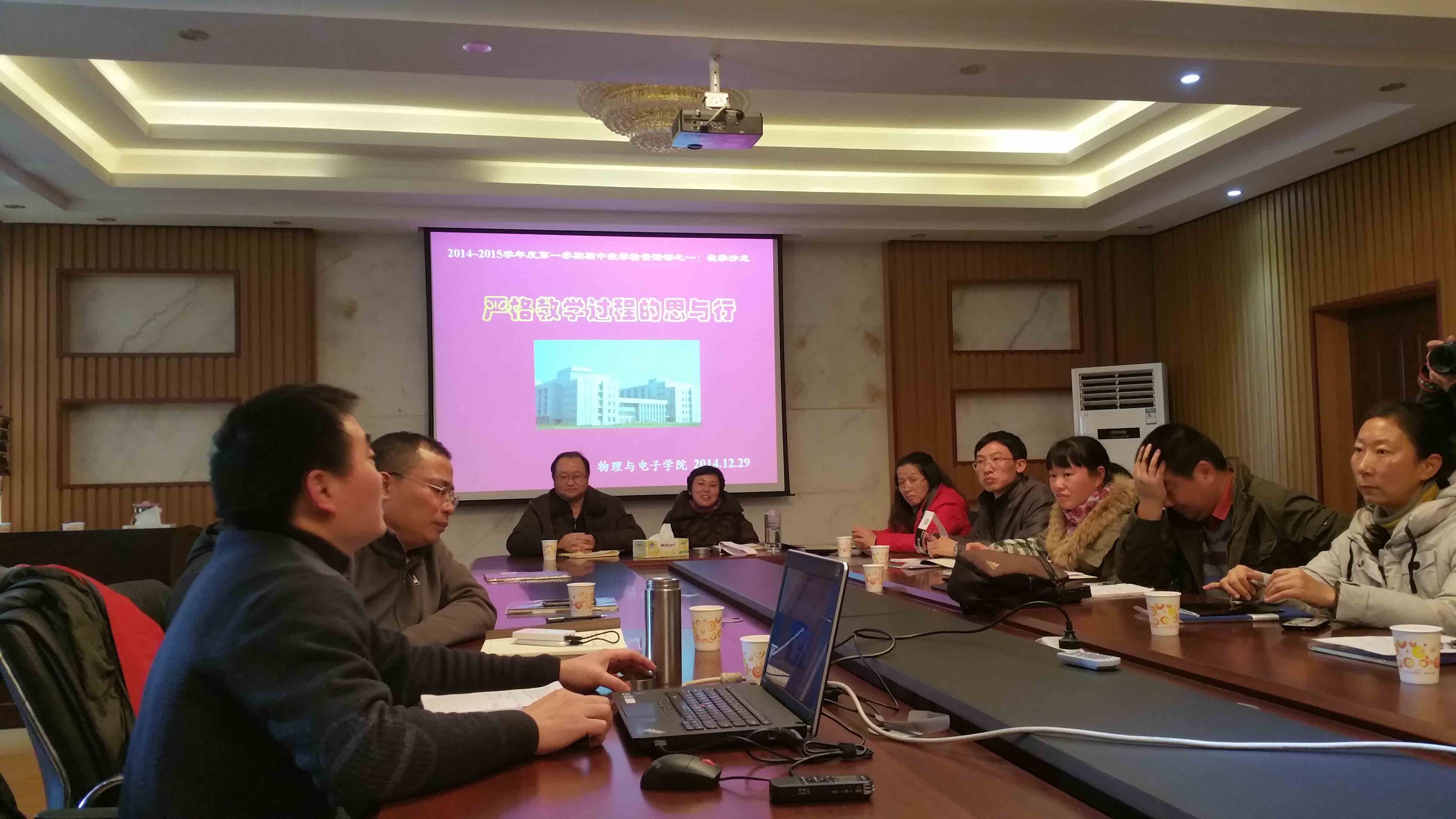 2014年12月29日,我所阳军亮、肖思老师出席了物理院2014~2015学年第一学期期中教学检查活动之一:教学沙龙“严格教学过程中的思与行”,并做了大会发言。