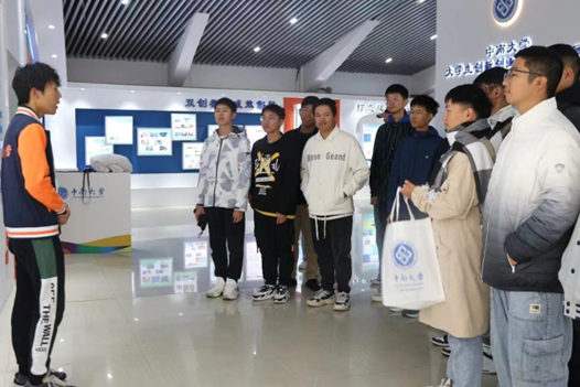 首先,在讲解员的带领下,同学们有序地参观了教育成果展示厅,走在走廊上,看见其他学长学姐的创业成果,大家都感受颇深,渴望自己能够创业的机会。