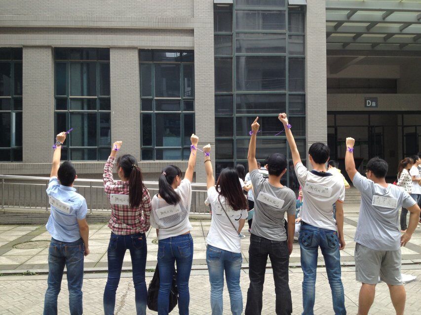 当天下午2时,同学们在D座集合。在简单的介绍之后,两班的同学根据选出的队长对决挑人,分成五个7人小队。“撕名牌”的游戏就正式开始了,各位同学展示出了自己的机智与实力——有的小队体力偏弱就抱团偷袭落单者;而实力较强者则两两一伙,肆无忌惮地寻找攻击目标。游戏过程中,大家还能寻找事先藏好的小纸条,可以在比赛结束后兑换零食。
