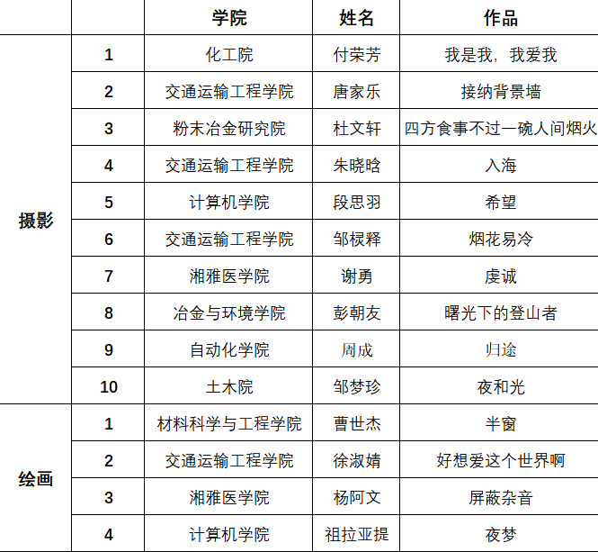 本次活动的目的就在于让同学们认识自我,展现自我,评分成绩的高低并不重要,最重要的的是通过参加活动,发现并记录校园生活中的点滴美好,养成自尊自爱的良好习惯,秉承唯美、有容的中南校风,做一个积极向上,向善求真的老员工,做一个优秀的中南人。