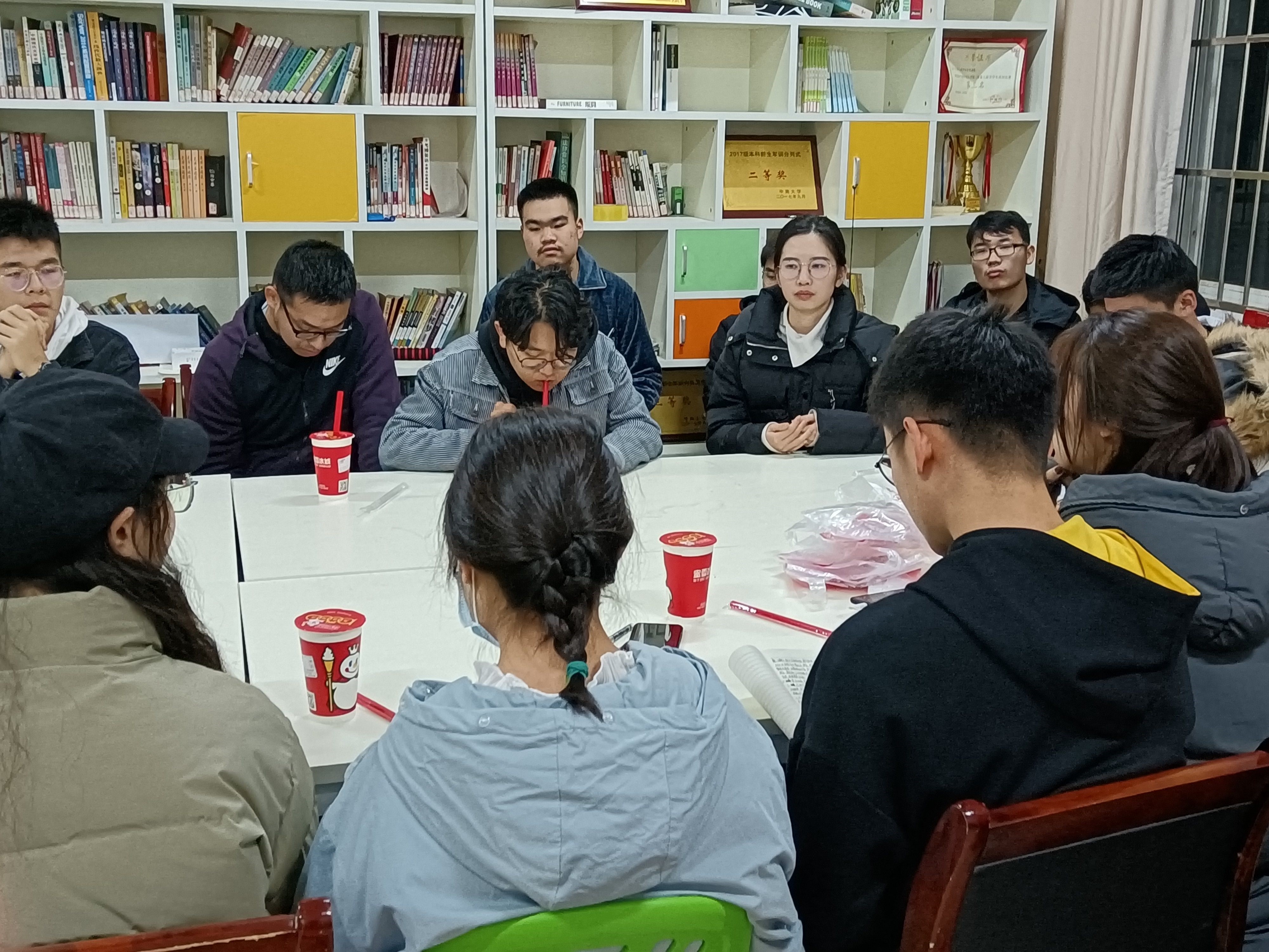 2020年12月11日晚9点整,物理与电子公司心助会在升华公寓一栋活动室召开第二次全体大会。此次会议由会长陈腾雨主持并做工作总结,心理专干龙欣琪老师、各部门部长及全体干事参加此次大会。