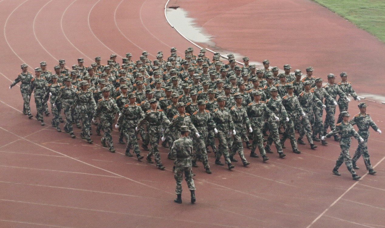 10时整,在激昂的国歌声中,汇演正式拉开帷幕。千锤百炼终成钢,物电院新生组成的三十连方阵,踏着整齐划一的步伐,喊着响亮的口号,步履铿锵、刚强坚韧地走向主席台,他们意气风发,坚毅的目光里透露出青春的活力,矫健的步伐里彰显出物电学子的自信与骄傲。