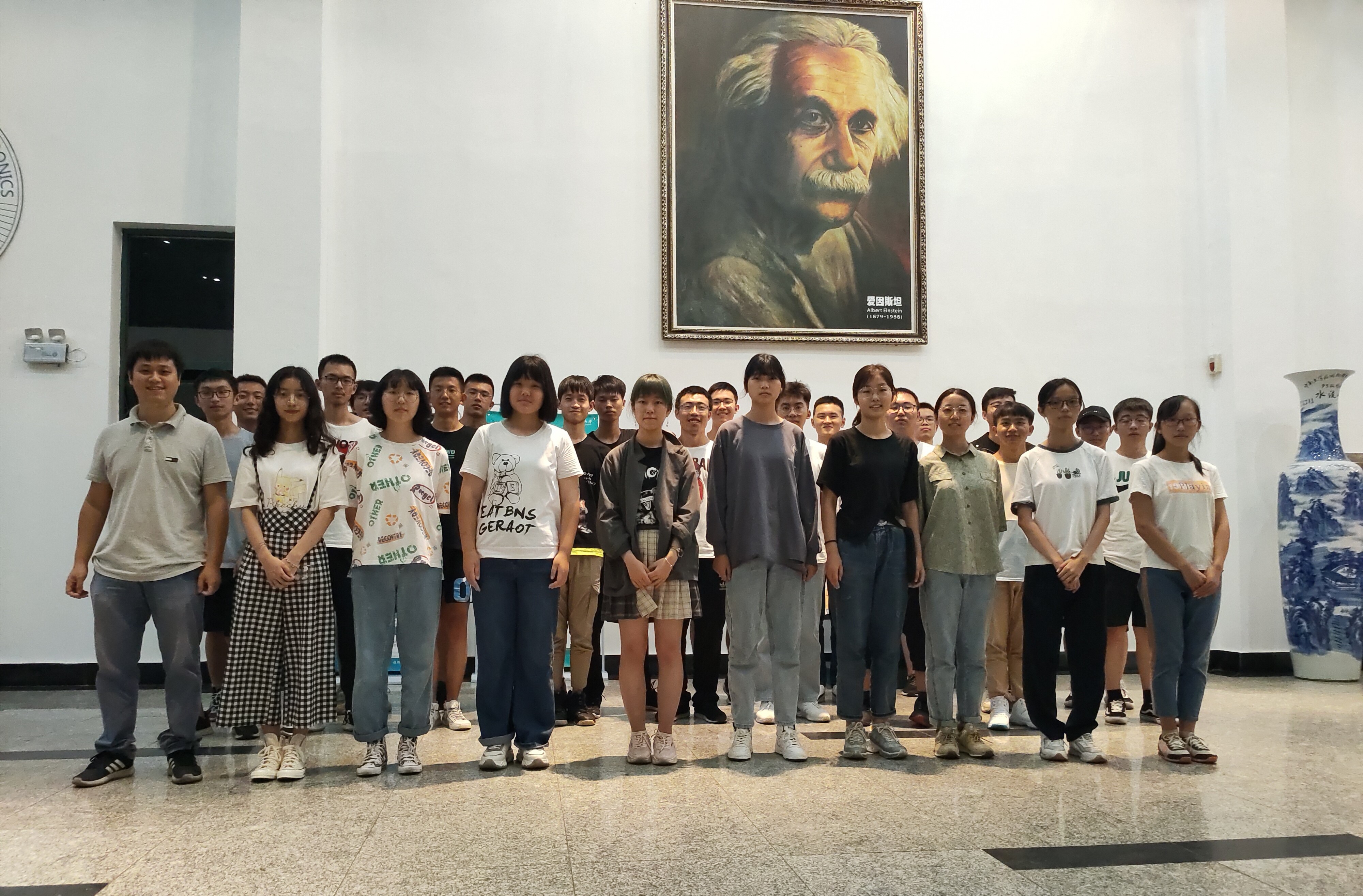 会后,班导师罗文琛教授、班助杨泽琦及2003班全体同学在物理楼合影留念。