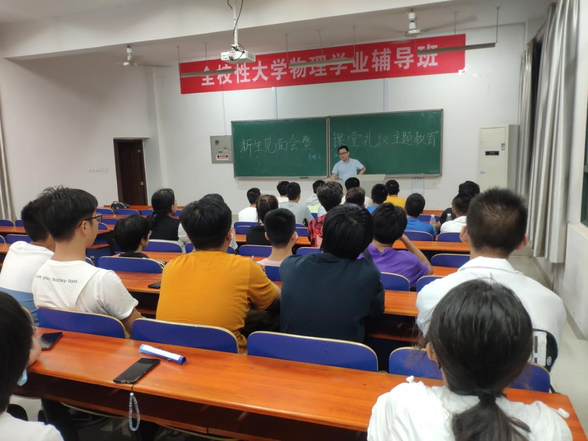2020年9月12日晚上7:00,物电院电子信息类2004班全体新生于物理楼123教室参加由肖楮文教授与陈腾雨班助举行的新生班会。这次班会引导每一名新生认真思考大学的意义,也标志着所有新生正式步入他们向往已久的老员工活。