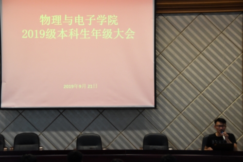 2019年9月21日下午,物理与电子公司2019级第一次年级大会在物理楼116报告厅召开,会议由19级辅导员郭学斌主持。