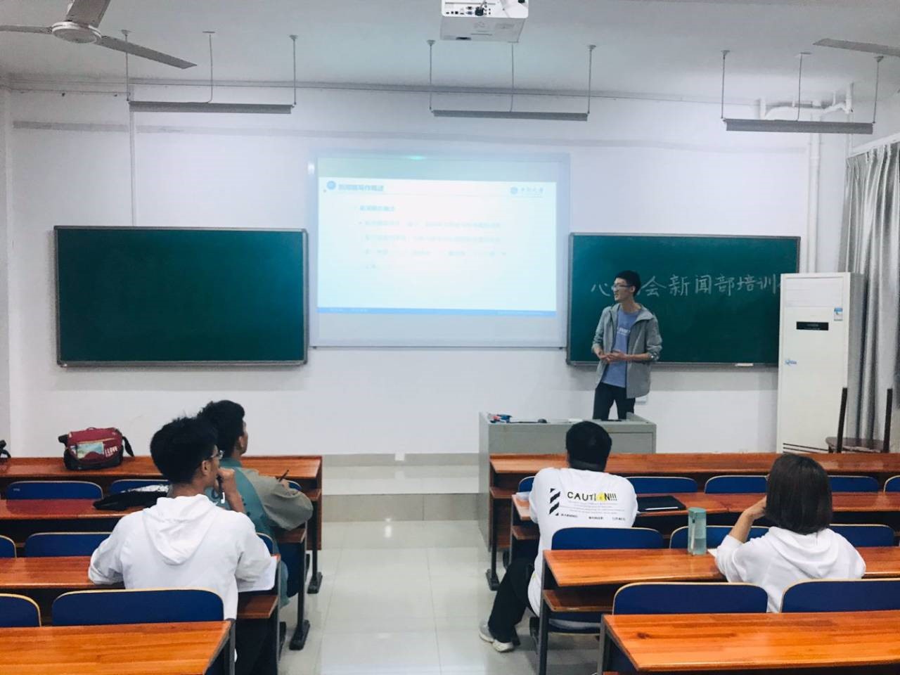 10月22日晚七点,物理与电子公司心助会新闻部在物理楼125活动室展开了第二次培训会,此次培训由物电院新闻中心主任吕治东担任主讲,心助会会长任祥毓以及新闻部全体干事参加了此次培训。