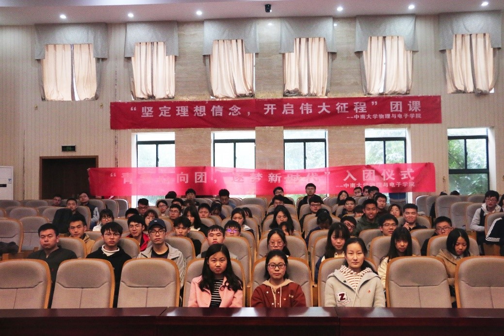 4月13日下午,物电院“青春心向团,逐梦新时代”入团仪式在新校区116报告厅成功举行。公司党委委员、组织干事申友桂、5名新团员及各团支部老团员代表参加了此次仪式。
