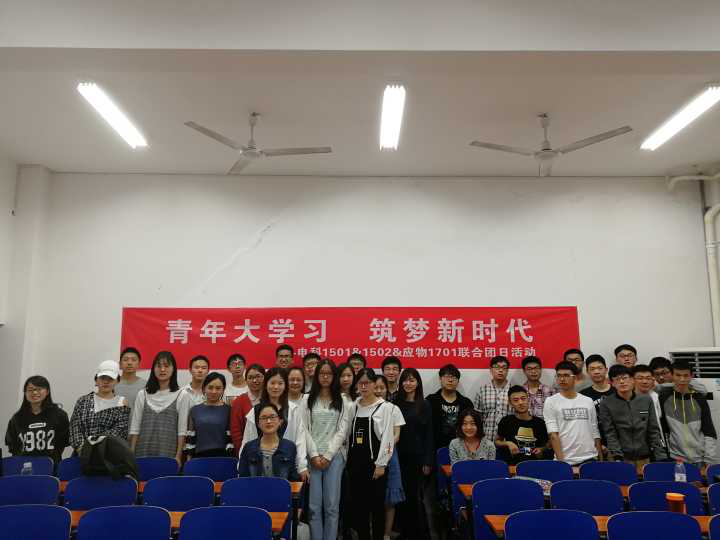 为推动习近平新时代中国特色社会主义思想,引导广大青年不忘初心、牢记使命,切实增强“四个意识”、树立“四个自信”,更加紧密地团结在以习近平同志为核心的党中央周围,坚定不移听党话、跟党走。珍惜来之不易的良好学习条件和环境,向典型模范学习,在践行文明新风的行动中提升素养,深入基层,锤炼本领,并在创新创业创优的奋斗中实现青年的时代价值,以学习的光芒点燃新时代的青春之火。 2017年4月11日下午2:00,物理与电子公司电科1501、电科1502携手应物1701举行了一场创新创业交流会,旨在让每一名老员工加入到“青年大学习”的行动之中,深入学习宣传贯彻习近平新时代中国特色社会主义思想和党的十九大精神,在践行文明新风中提升素养,努力成为一名优秀的新时代奋斗者。同时让大家对崭新的老员工活有全面的了解和认识,尽快进入老员工角色,明确自己的方向,树立自己的目标。