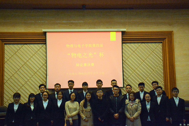 12月3日下午,物理与电子公司第四届“物电之杯”辩论决赛在新校区物理楼116报告厅顺利举办。院辩论队队员担任本场比赛的评委,来自参赛班级的一百余名同学观看了比赛。