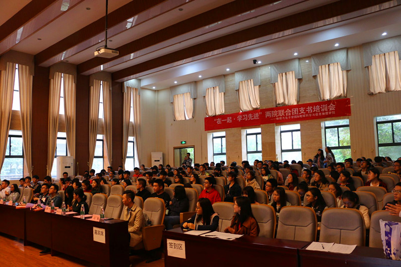 10月22日下午,物理与电子公司与地球信息与科学公司“在一起,学习先进”联合团支书培训大会在物理楼116顺利举行,出席本次大会的嘉宾有物电院分团委书记杨凌云、校团委团日活动管理中心主任徐可、校团委组织部副部长王薪潼、地信院员工会主席刘凯,地信院、物电院优秀团支书代表王扬帆、韦鹏振以及两院全体团支书,组织委员和宣传委员。