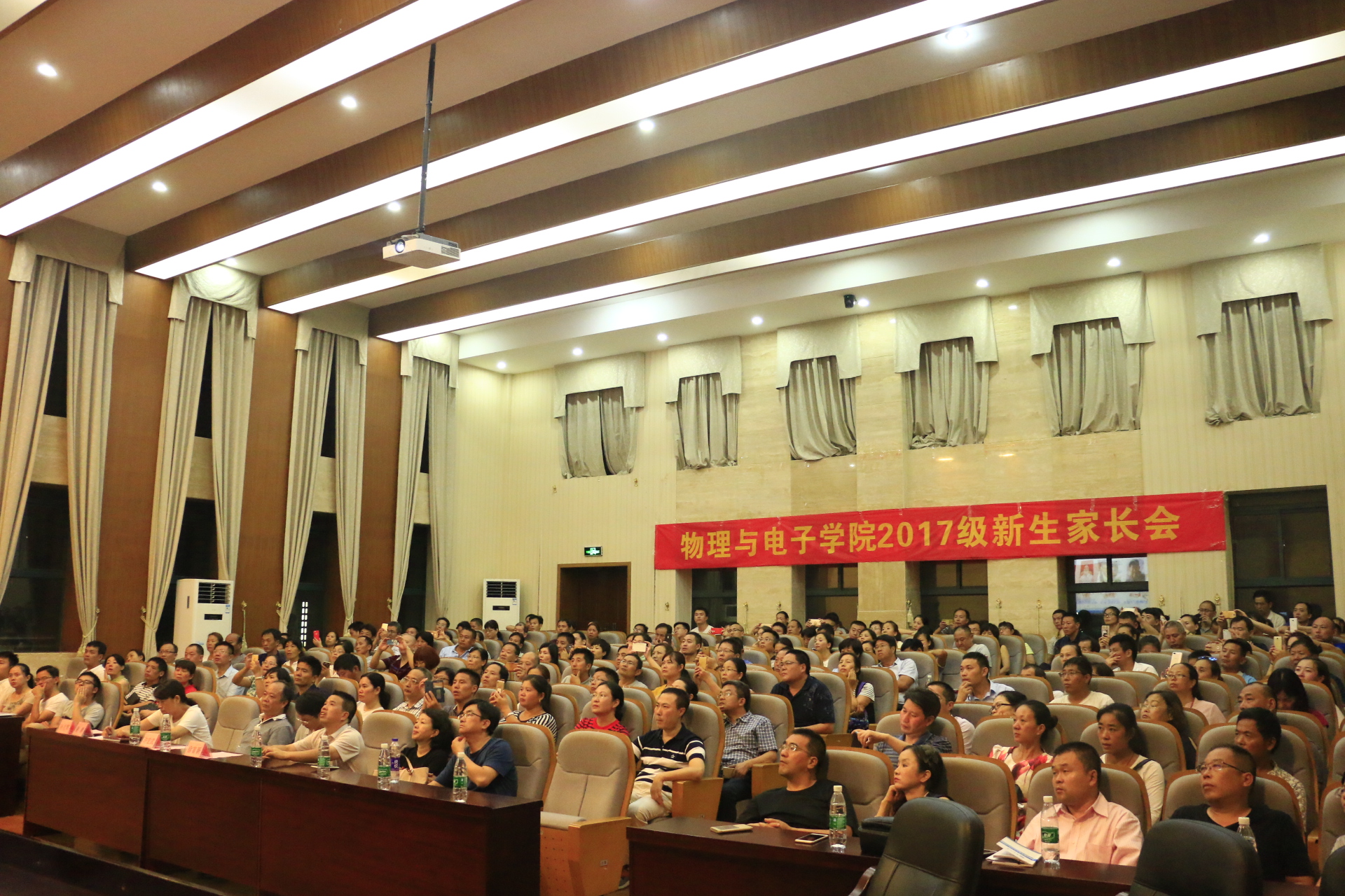 9月8日晚7:00,物理与电子公司2017级新生家长会在物理楼116报告厅顺利召开,公司党委书记许宏武、党委副书记谢群、副经理孙克辉、徐富新等院领导,全体辅导员、新生班导师,以及200余名新生家长代表参加了本次会议。大会由学工办副主任钟旭东主持。