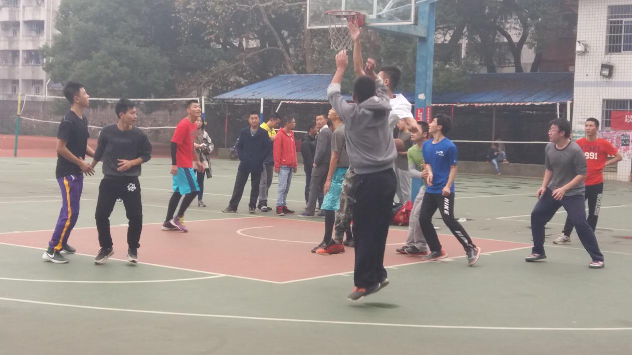 12月3日中午12:00,电科1505班对抗物科1501班的班级篮球赛在南校操场顺利举行。本场比赛电科1505班最终以55:18的比分赢得胜利。