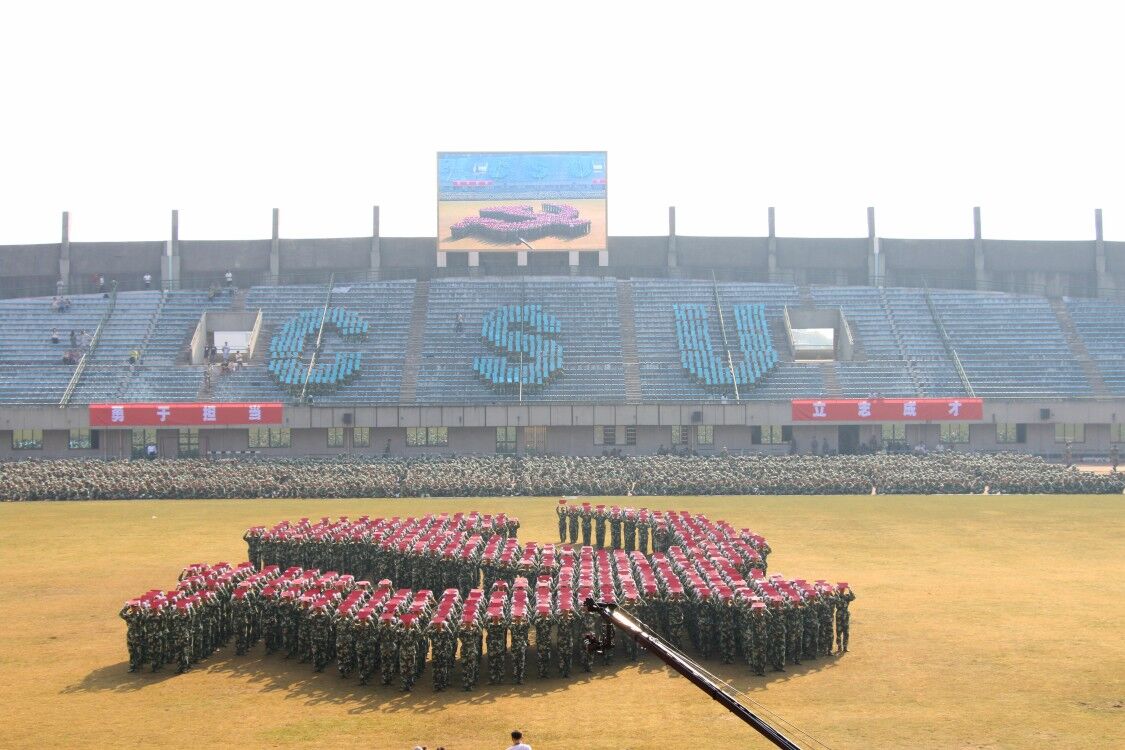 上午8点整,大会在庄严的国歌声中拉开序幕。8000余名本科新生在草坪上整装以待,接受了高文兵书记的检阅。随后由国防生连队以及各二级公司组成的表演队列为大家带来精彩纷呈的科目表演。其中,三营物电院、信息院、外语院联合表演的队列操在嘹亮的军歌声中隆重上演。方阵不断变换出“长征、七七、改革开放、自信、WTO、G20、95、80”等字样以及党徽、中国全版图等图案,整齐划一的表演给人以强烈的视觉震撼。表演过程中,物院学子精神饱满,英姿飒爽,意气风发,充分展现了物电院坚忍不拔、顽强拼搏的优良风貌。