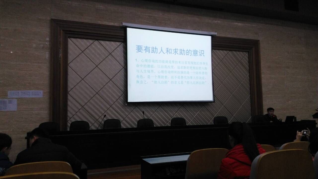 培训会上,杨老师从心理健康的定位、心理危机、危机的处理方法这三个方面进行了详细的介绍。杨老师从心理健康的专业知识谈起,深入浅出地讲解了心理健康的含义,纠正大家对心理健康的错误认识。他强调到,同学们要具有助人和求助意识,处理好人际交往的问题,做到共同进步与成长。