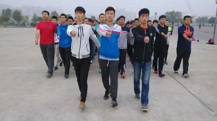 10日下午,同学们又在南校体育场开展了了分列式表演项目的训练,训练由物理院国防生李子源同学组织开展,他就集体意识、动作要求等方面作了细致的讲解。体育场上,同学们喊着响亮的口号,昂首挺胸,一步步地认真练习,积极为校运动开幕式表演做准备。