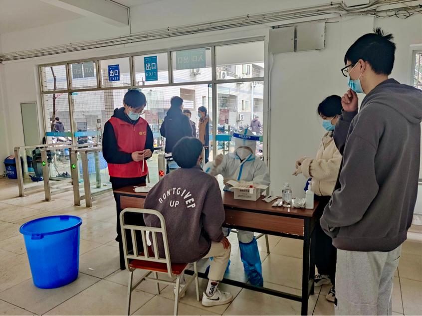与以往核酸检测组织方式不同,本次检测采取了分楼栋、楼层依次进行的方式,有效避免了大规模人员聚集的现象,降低了交叉感染风险。检测现场,公司辅导员、班导师和公司员工志愿者们冲锋在前,组织队伍,引导人流,确保了核酸检测工作快速有序进行。员工们听从指挥,整齐佩戴口罩,保持安全距离,排队进行核酸检测。医护工作者们身着防护服坚守阵地,为楼栋员工进行核酸采样,为疫情防控保驾护航。