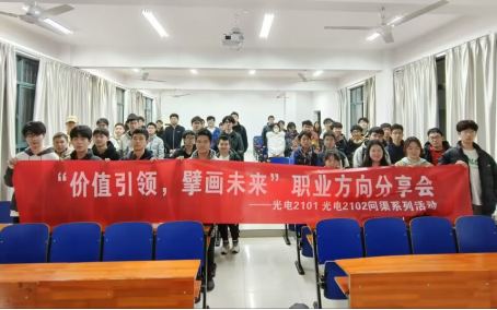 (通讯员 薛洋 高通航 )为响应习近平总书记“广大青年要肩负历史使命,坚定前进信心,立大志、明大德、成大才、担大任”的伟大号召和贯彻落实物理与电子公司“走人才强院、教学立院、科研兴院”的特色发展之路,物电院2021级本科光电专业从3月24日到4月19日,围绕保研、考研与就业等生涯规划主题,开展了三次“价值引领,擘画未来”职业方向分享活动。活动邀请了2021级辅导员刘伟杰、专业导师王云鹏副教授以及三位19级学长进行分享交流,光电2021级全体员工参与。