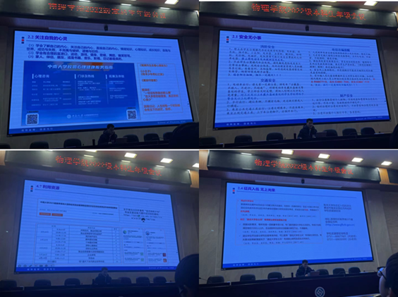 会上,萧鸿猷老师就公司情况,安全及征兵宣传,毕业和人生选择,保研、考研及就业这四个方面对大家进行指导。首先,萧老师对公司概况进行了简要介绍;其次,萧老师就消防安全,电信诈骗,交通安全,财产安全,心理健康等安全问题进行了着重强调,要求同学们规范遵守年级各项规定,重视起安全问题,保护自身安全。接着,萧老师就征兵流程和优惠政策进行讲解,鼓励同学们积极响应祖国号召,携笔从戎,参军报国;之后,萧老师对职业生涯规划做出了指导,从考研、保研、就业、留学四个方面为同学们做出了细致分析,援引往届保研,考研,出国及就业同学的数据进行深刻分析,解除了同学们生涯规划上面的困惑,鼓励同学们坚持奋斗,为了自己的目标不段前进!最后,萧老师对同学们的老员工活表达了祝福,祝愿每个人都能在大学中实现自己的价值。