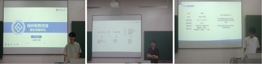 本次活动采用“线下分享+线上答疑”双线模式。在线下交流环节,高通航、徐宇轩、张航三位优秀学子依次登台,结合自身经历,从政策解读、院校选择、材料准备、面试策略等方面展开详细讲解。张航重点分享了“国优计划”的申请流程与优势,为学子拓宽了保研路径的认知。分享过程中,三人均强调,选择院校需综合考量个人成绩、特长与职业发展目标,避免盲目跟风。线上答疑环节,王宜兵、王心灵、高进三位学长学姐针对“学业科研平衡”“导师联络技巧”“保研方向定位”等问题逐一解答,并结合提问者的实际情况提供个性化建议,有效解决了学子的困惑。