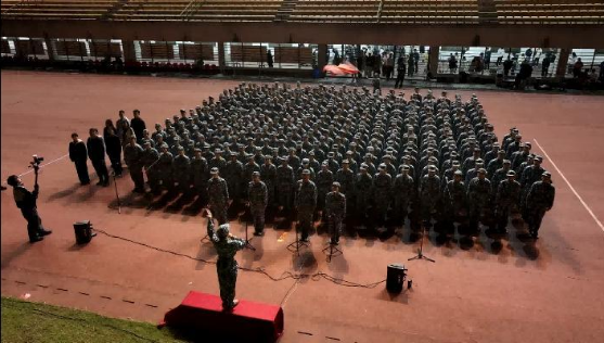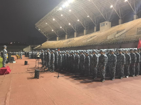 比赛开始之前,十七连全体成员于体育场外整齐列队。尽管夜色深沉、天气寒冷,但参赛新生仍热情洋溢,自发练习,确保以最佳的状态投入比赛。老师、班助以及十七连的全体教官共同陪伴着同学们,见证着这一难忘的时刻。