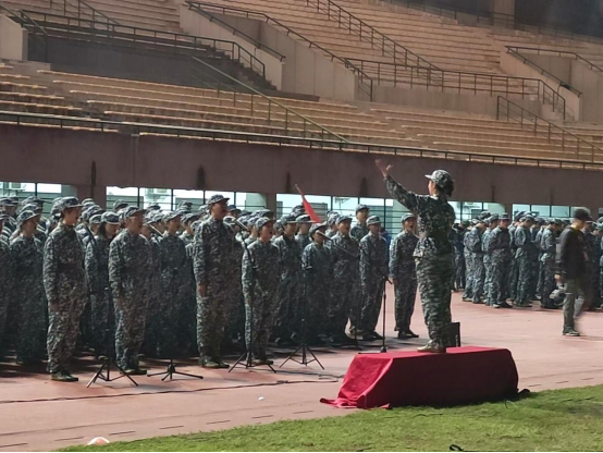 新生们嘹亮而真挚的歌声,迸发出蓬勃的生命力量,表达了他们对军训历程的深刻感悟及对大学新征程的美好展望,充分展现出十七连同学们团结一致、积极向上的精神面貌。歌声整齐划一,饱含着他们对崭新未来的满腔热血,也体现了他们踔厉奋发、自强不息的青春风采。