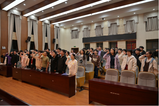 随后,李步一宣布第二十一届团委员工会、第四届青年传媒中心成立,介绍各部门干事与部长。全体成员起立,在李步一的带领下宣誓。