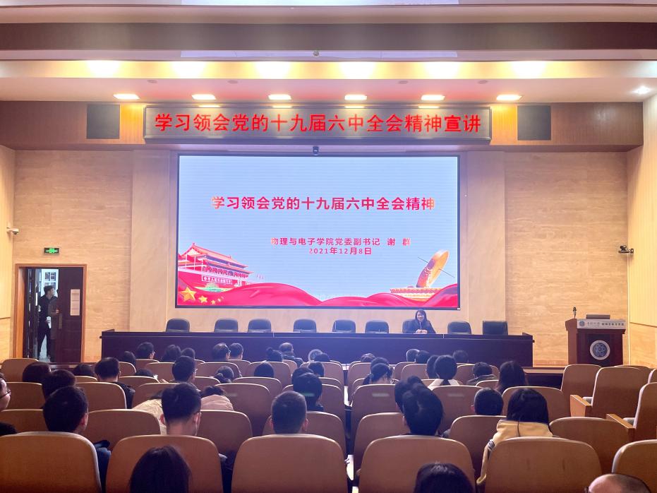 12月8日下午,公司电子系教工党支部、本科生第一党支部、研究生第六党支部在物理楼116报告厅以“学习领会党的十九届六中全会精神”为主题开展党课,党课由公司党委副书记谢群主讲。首先,谢群简要介绍了党的十九...